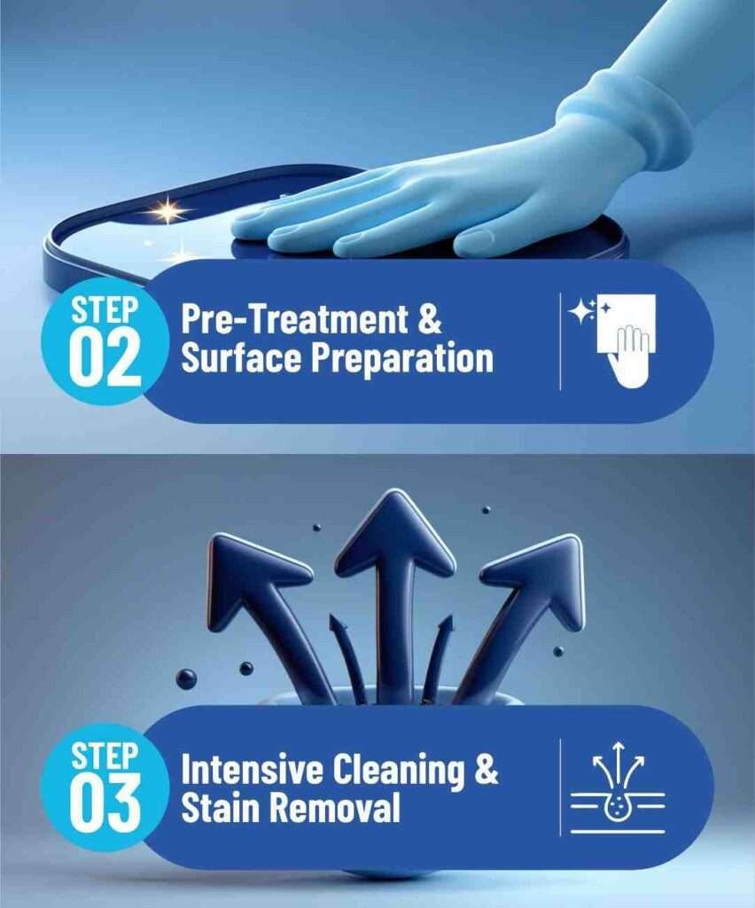 For heavy-duty cleaning, we apply pre-treatment solutions that loosen dirt, grime, and stains. This is particularly useful for high-traffic areas, like shopping centres or medical facilities, where routine maintenance can’t keep up with the daily wear. Our team then prepares the surface for intensive cleaning.